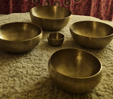 Die Schwingungen der Klangschalen breiten sich über Haut, Gewebe und Flüssigkeiten im Körper aus.